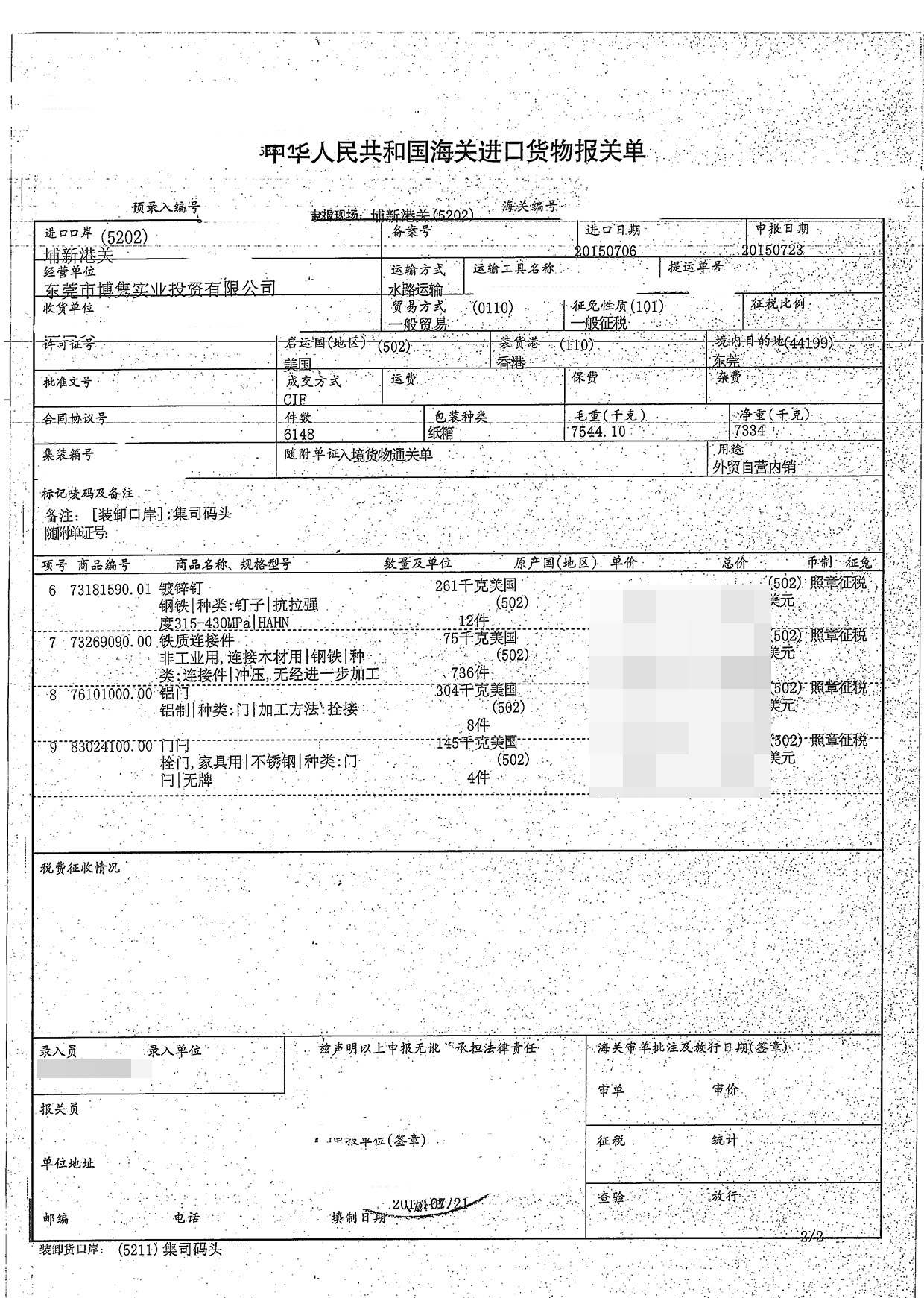三、五金配件進口報關案例展示
