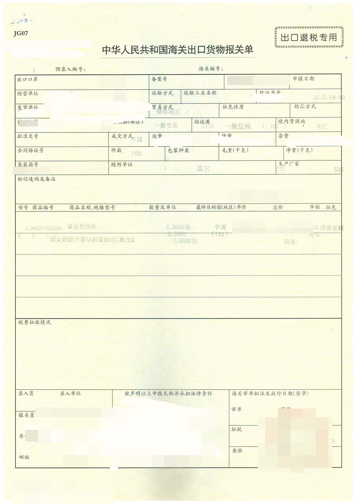 出口日期:2015-04-30
