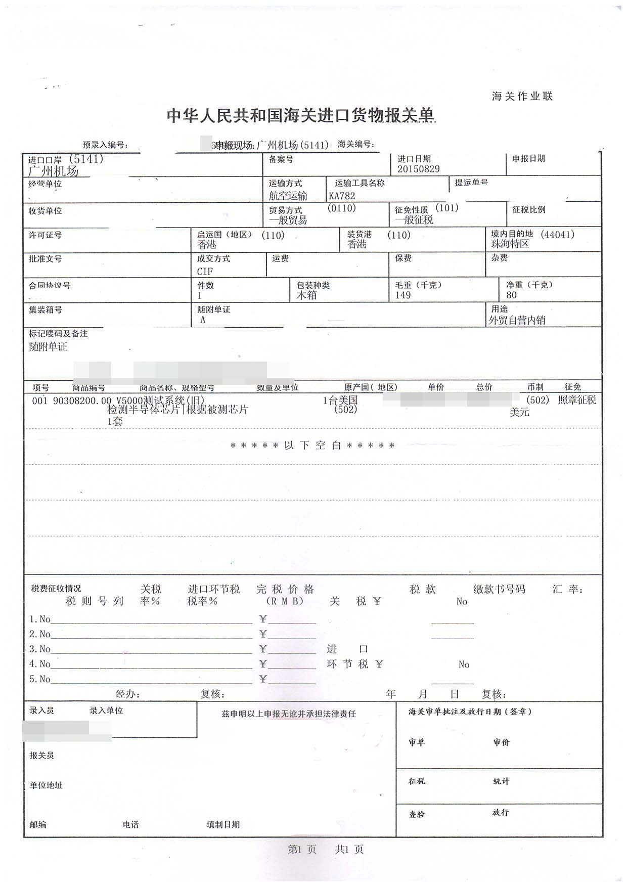 【文章標題】:測試機(舊)進口報關手續及案例【進口知識】 http://m.sdwad.com/lm7/73.html 轉載請注明出處